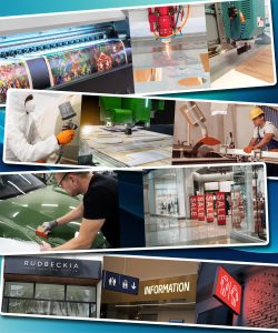 • Printing: Harnessing state-of-the-art technology, we offer versatile printing solutions in vinyl, fabric, Duratrans, flex, and banner formats.